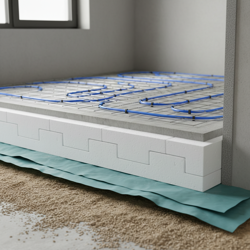 Šiuolaikinės, inovatyvios statybos yra absoliučiai neatsiejamos nuo išmanių inžinerinių pastato valdymo sprendimų, o teisingai suprojektuotas grindų šiltinimo sluoksnis atlieka bene patį esminį vaidmenį juos sėkmingai diegiant. Tinkamai ir kokybiškai įrengtas polistirolo plokščių sluoksnis ne tik izoliuoja bei apsaugo pastatą nuo šilumos nutekėjimo gilyn į gruntą, bet ir tiesiogiai lemia visos modernios namo šildymo sistemos naudingumo koeficientą ir bendrą efektyvumą. Įrengiant vis labiau populiarėjantį žematemperatūrį grindinį šildymą virš polistirolo lakštų, izoliacija veikia kaip ekranas, kuris atmuša ir nukreipia vamzdeliais tekančio vandens šilumą atgal į gyvenamąją patalpą. Tai reiškia, kad jūsų šilumos siurblys ar katilas neprivalo šildyti po namu esančios betono perdangos ar įšalusios žemės – visa brangiai pagaminta energija atiduodama tiesiai į jūsų kambarius, keliaudama per išlyginamąjį betono sluoksnį ir viršutinę grindų apdailą. Be to, tokiame storame polistirolo sluoksnyje statybų metu yra ypatingai patogu saugiai paslėpti išmanaus namo inžinerines komunikacijas: rekuperacinės vėdinimo sistemos plastikinius kanalus (jei tokie pagal inžinierių projektą yra numatyti montuoti būtent grindų zonoje), centrinio dulkių siurblio plačias magistralines trasas ar sudėtingus santechnikos kolektorių mazgus.