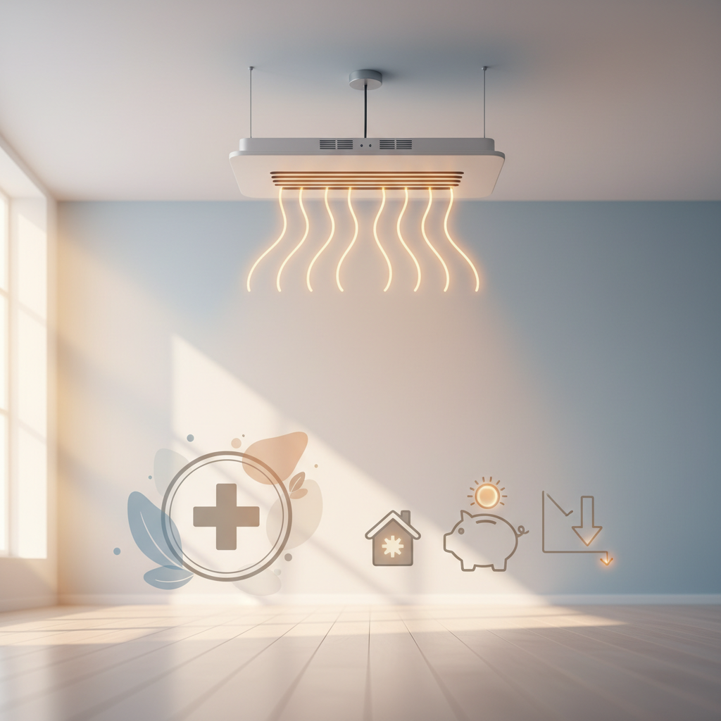 Pagrindinis sveikatos privalumas, kurį patvirtina ir medikai, ir vartotojai – oro kokybė. Konvekciniai šildytuvai (ypač pučiantys orą) kelia dulkes, degina deguonį ir sausina orą. Infraraudonieji šildytuvai to nedaro. Oras išlieka gaivesnis, natūralios drėgmės lygis krenta lėčiau. Žmonėms, kenčiantiems nuo astmos ar alergijų dulkėms, tai yra vienas geriausių pasirinkimų. Be to, šiltos grindys ir sienos sukuria didesnį jaukumo jausmą nei karštas oras palubėje.